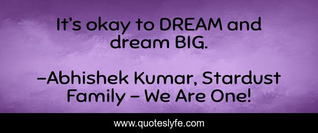 "Abhishek Kumar, Stardust Family - We Are One! Quotes." Quoteslyfe.com, 2025. Sat. 06 Dec. 2025. <https://www.quoteslyfe.com/quote/It-s-okay-to-DREAM-and-dream-131020>.