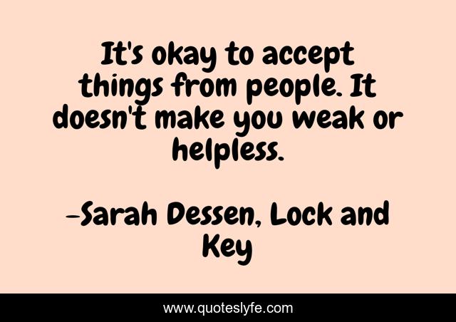 "Sarah Dessen, Lock and Key Quotes." Quoteslyfe.com, 2025. Fri. 05 Dec. 2025. <https://www.quoteslyfe.com/quote/It-s-okay-to-accept-things-from-51273>.