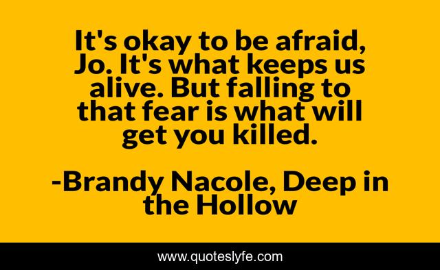 "Brandy Nacole, Deep in the Hollow Quotes." Quoteslyfe.com, 2025. Sun. 07 Dec. 2025. <https://www.quoteslyfe.com/quote/It-s-okay-to-be-afraid-Jo-45679>.