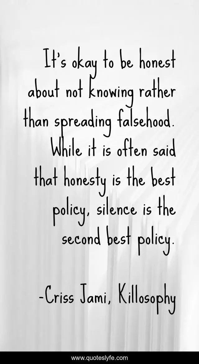"Criss Jami, Killosophy Quotes." Quoteslyfe.com, 2025. Sat. 06 Dec. 2025. <https://www.quoteslyfe.com/quote/It-s-okay-to-be-honest-about-146480>.