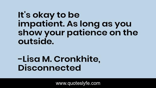 This page presents the quote "It's okay to be impatient. As long as you show your patience on the outside.". Author of this quote is Lisa M. Cronkhite, Disconnected. .