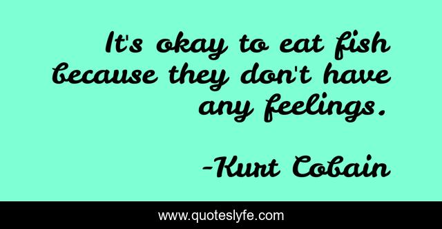 This page presents the quote "It's okay to eat fish because they don't have any feelings.". Author of this quote is Kurt Cobain. This quote is about fish, okay, feelings,.