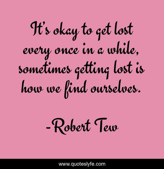 This page presents the quote "It’s okay to get lost every once in a while, sometimes getting lost is how we find ourselves.". Author of this quote is Robert Tew. This quote is about found, life, getting-lost, lost, finding-yourself,.