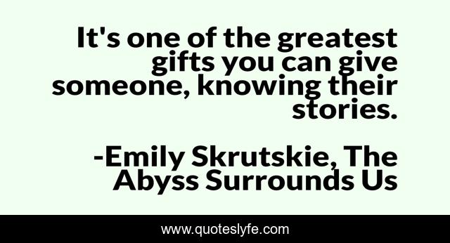 This page presents the quote "It's one of the greatest gifts you can give someone, knowing their stories.". Author of this quote is Emily Skrutskie, The Abyss Surrounds Us. .