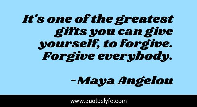 This page presents the quote "It's one of the greatest gifts you can give yourself, to forgive. Forgive everybody.". Author of this quote is Maya Angelou. This quote is about yourself, greatest, forgive,.