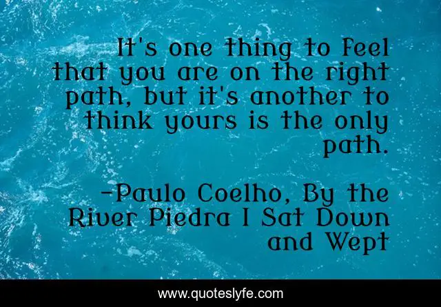 This page presents the quote "It's one thing to feel that you are on the right path, but it's another to think yours is the only path.". Author of this quote is Paulo Coelho, By the River Piedra I Sat Down and Wept. This quote is about path, life,.