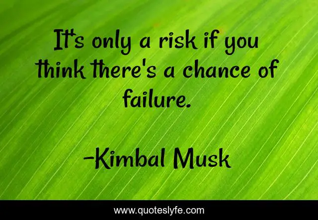 This page presents the quote "It's only a risk if you think there's a chance of failure.". Author of this quote is Kimbal Musk. This quote is about chance, risk, think,.
