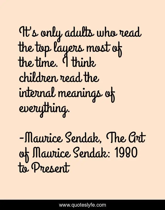 "Maurice Sendak, The Art of Maurice Sendak: 1980 to Present Quotes." Quoteslyfe.com, 2025. Mon. 08 Dec. 2025. <https://www.quoteslyfe.com/quote/It-s-only-adults-who-read-the-68137>.