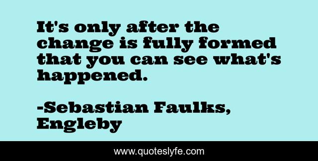 This page presents the quote "It's only after the change is fully formed that you can see what's happened.". Author of this quote is Sebastian Faulks, Engleby. .