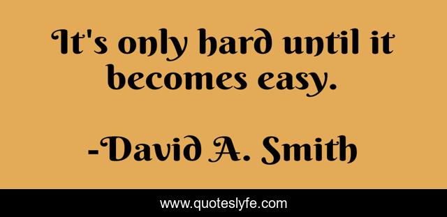 This page presents the quote "It's only hard until it becomes easy.". Author of this quote is David A. Smith. This quote is about humor, wisdom,.