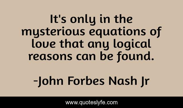 This page presents the quote "It's only in the mysterious equations of love that any logical reasons can be found.". Author of this quote is John Forbes Nash Jr. This quote is about love, beatiful, mind, logical, equations, affection,.