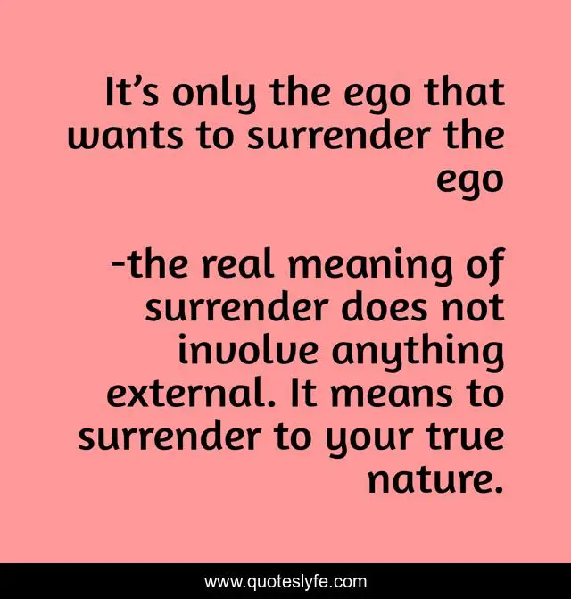 This page presents the quote "It’s only the ego that wants to surrender the ego". Author of this quote is the real meaning of surrender does not involve anything external. It means to surrender to your true nature.. .
