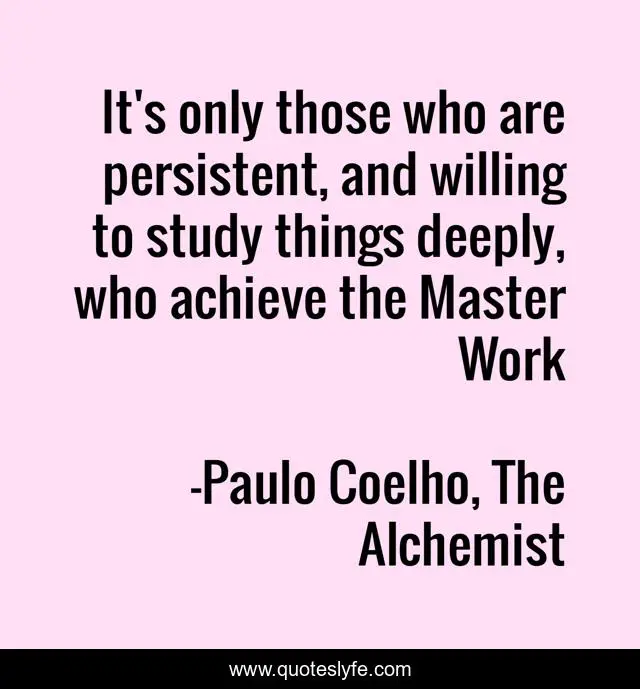 This page presents the quote "It's only those who are persistent, and willing to study things deeply, who achieve the Master Work". Author of this quote is Paulo Coelho, The Alchemist. This quote is about perseverance, hard-work, persistence,.