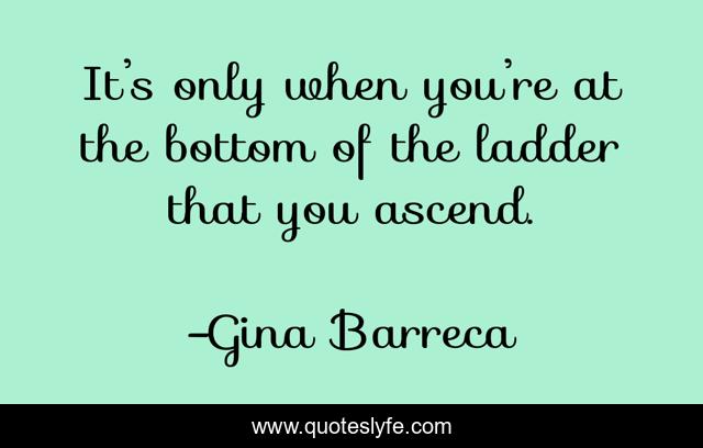 This page presents the quote "It’s only when you’re at the bottom of the ladder that you ascend.". Author of this quote is Gina Barreca. This quote is about enthusiasm, inspirational,.