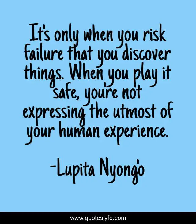 This page presents the quote "It's only when you risk failure that you discover things. When you play it safe, you're not expressing the utmost of your human experience.". Author of this quote is Lupita Nyong'o. This quote is about play, risk, experience,.