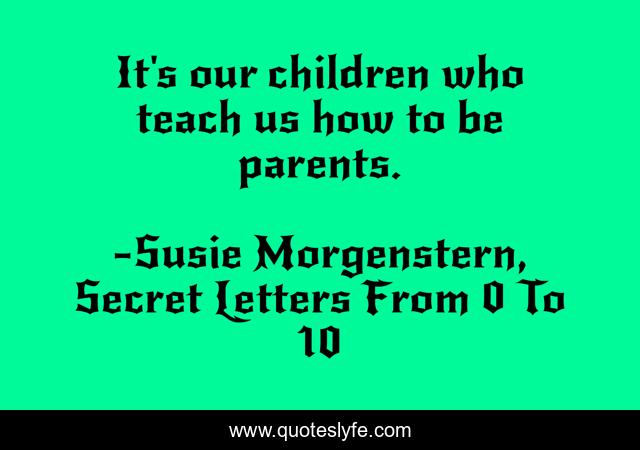 This page presents the quote "It's our children who teach us how to be parents.". Author of this quote is Susie Morgenstern, Secret Letters From 0 To 10. This quote is about parenting, children,.