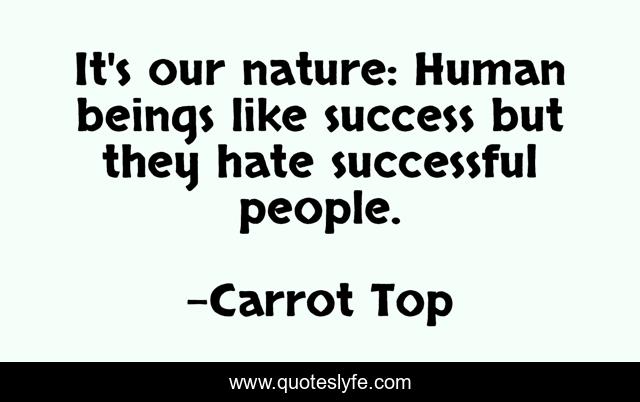 This page presents the quote "It's our nature: Human beings like success but they hate successful people.". Author of this quote is Carrot Top. This quote is about successful, hate, nature,.