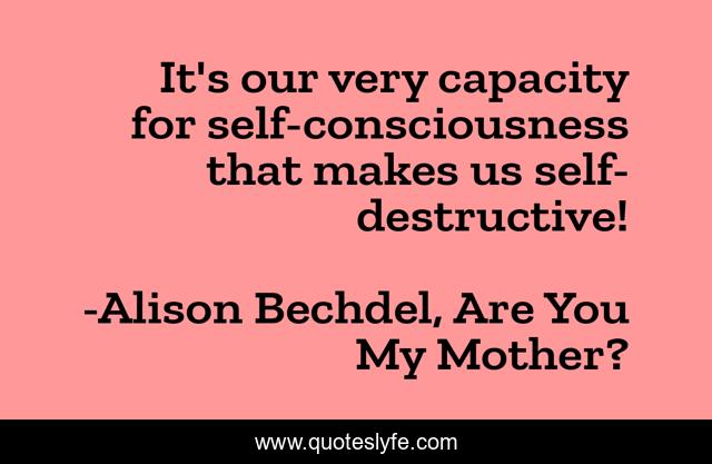 This page presents the quote "It's our very capacity for self-consciousness that makes us self-destructive!". Author of this quote is Alison Bechdel, Are You My Mother?. This quote is about psychological-insight, authenticity,.
