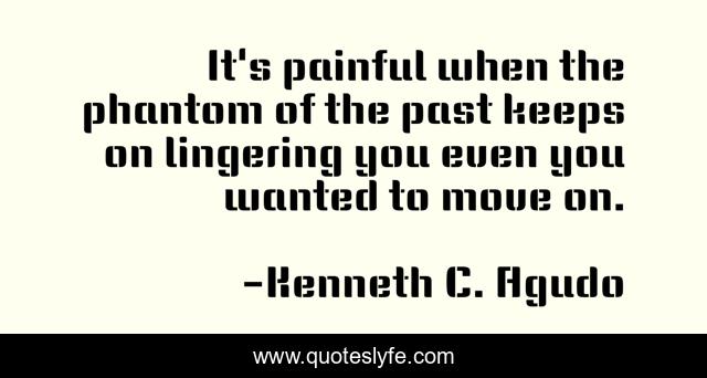 This page presents the quote "It's painful when the phantom of the past keeps on lingering you even you wanted to move on.". Author of this quote is Kenneth C. Agudo. This quote is about brokenness, memories, sad, past, love, pain, affection,.