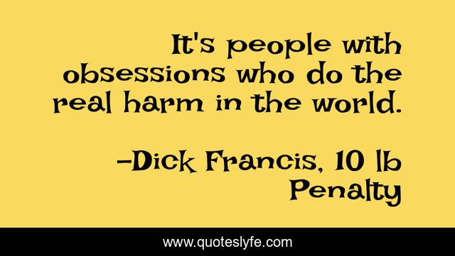"Dick Francis, 10 lb Penalty Quotes." Quoteslyfe.com, 2025. Sat. 06 Dec. 2025. <https://www.quoteslyfe.com/quote/It-s-people-with-obsessions-who-do-280471>.