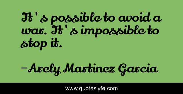 This page presents the quote "It's possible to avoid a war. It's impossible to stop it.". Author of this quote is Arely Martinez Garcia. This quote is about impossible, possible, war,.