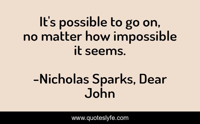 This page presents the quote "It's possible to go on, no matter how impossible it seems.". Author of this quote is Nicholas Sparks, Dear John. This quote is about chance, future, possible,.
