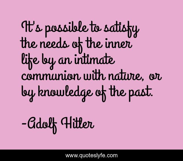This page presents the quote "It's possible to satisfy the needs of the inner life by an intimate communion with nature, or by knowledge of the past.". Author of this quote is Adolf Hitler. This quote is about religion, history, spirituality-vs-religion, spirituality, nature,.