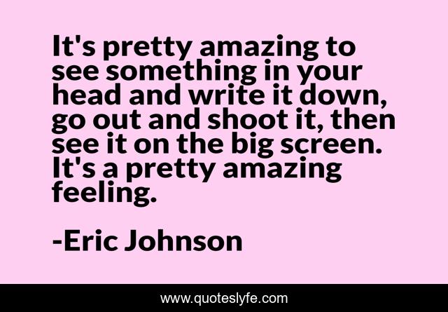 This page presents the quote "It's pretty amazing to see something in your head and write it down, go out and shoot it, then see it on the big screen. It's a pretty amazing feeling.". Author of this quote is Eric Johnson. This quote is about down, see, feeling,.