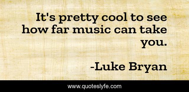 This page presents the quote "It's pretty cool to see how far music can take you.". Author of this quote is Luke Bryan. This quote is about see, music,.