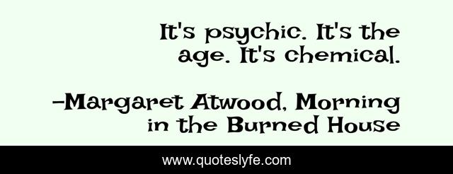 "Margaret Atwood, Morning in the Burned House Quotes." Quoteslyfe.com, 2025. Sat. 06 Dec. 2025. <https://www.quoteslyfe.com/quote/It-s-psychic-It-s-the-age-124772>.