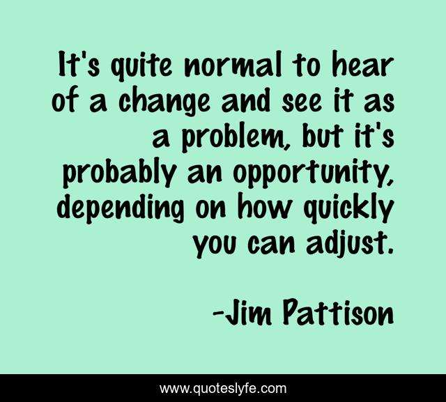 This page presents the quote "It's quite normal to hear of a change and see it as a problem, but it's probably an opportunity, depending on how quickly you can adjust.". Author of this quote is Jim Pattison. This quote is about problem, opportunity,.