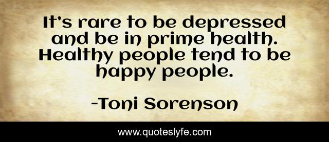 This page presents the quote "It’s rare to be depressed and be in prime health. Healthy people tend to be happy people.". Author of this quote is Toni Sorenson. This quote is about health, happiness-positive-outlook, fitness,.
