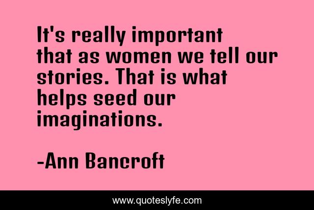 This page presents the quote "It's really important that as women we tell our stories. That is what helps seed our imaginations.". Author of this quote is Ann Bancroft. This quote is about helping, people,.