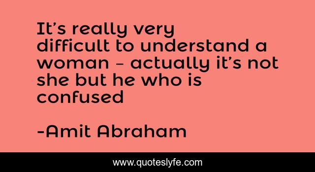 This page presents the quote "It’s really very difficult to understand a woman – actually it’s not she but he who is confused". Author of this quote is Amit Abraham. This quote is about woman, confused, understanding-others,.