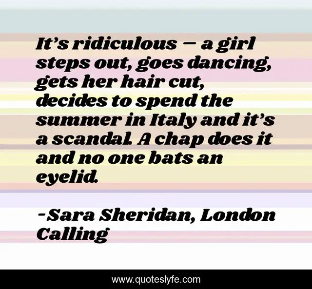 This page presents the quote "It’s ridiculous – a girl steps out, goes dancing, gets her hair cut, decides to spend the summer in Italy and it’s a scandal. A chap does it and no one bats an eyelid.". Author of this quote is Sara Sheridan, London Calling. This quote is about double-standard, gender, inequality,.