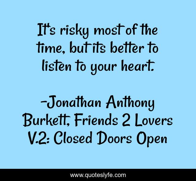 "Jonathan Anthony Burkett, Friends 2 Lovers V.2: Closed Doors Open Quotes." Quoteslyfe.com, 2025. Mon. 08 Dec. 2025. <https://www.quoteslyfe.com/quote/It-s-risky-most-of-the-time-127284>.