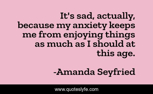 This page presents the quote "It's sad, actually, because my anxiety keeps me from enjoying things as much as I should at this age.". Author of this quote is Amanda Seyfried. This quote is about me, anxiety, sad,.