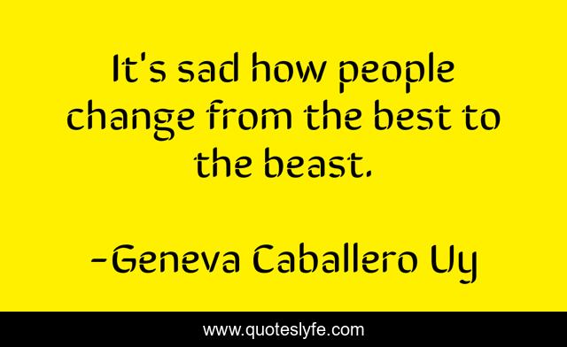 This page presents the quote "It's sad how people change from the best to the beast.". Author of this quote is Geneva Caballero Uy. This quote is about move-on, sadness, sadness-love, ache, sadness-loneliness, change,.