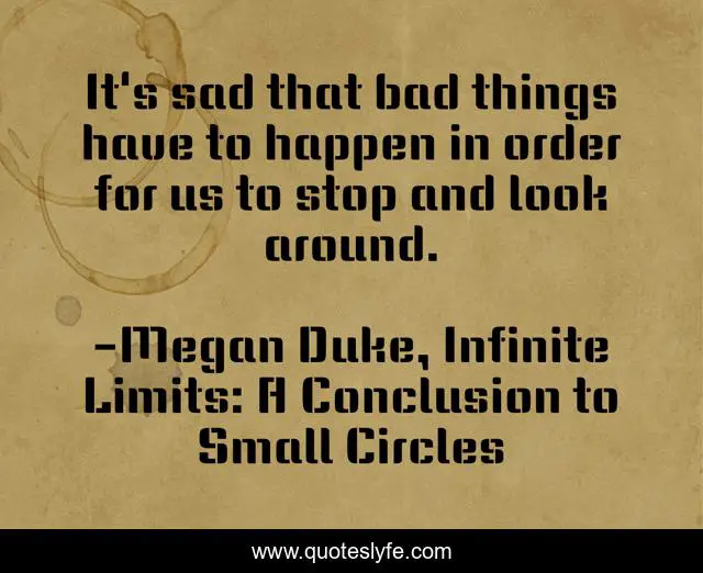 "Megan Duke, Infinite Limits: A Conclusion to Small Circles Quotes." Quoteslyfe.com, 2025. Fri. 05 Dec. 2025. <https://www.quoteslyfe.com/quote/It-s-sad-that-bad-things-have-245063>.