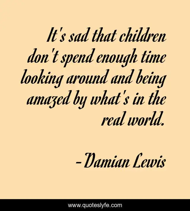 This page presents the quote "It's sad that children don't spend enough time looking around and being amazed by what's in the real world.". Author of this quote is Damian Lewis. This quote is about world, children, time,.