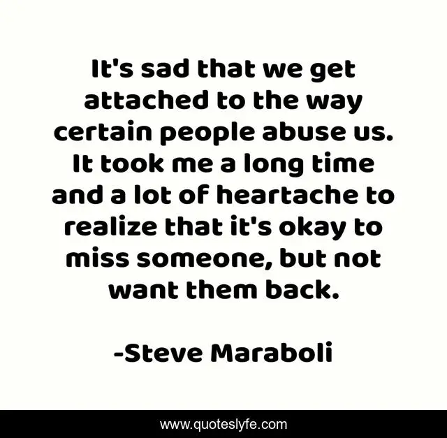 It's sad that we get attached to the way certain people abuse us. It took me a long time and a lot of heartache to realize that it's okay to miss someone, but not want them back.