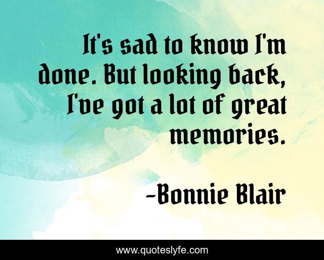 This page presents the quote "It's sad to know I'm done. But looking back, I've got a lot of great memories.". Author of this quote is Bonnie Blair. This quote is about memories, looking back, sad,.