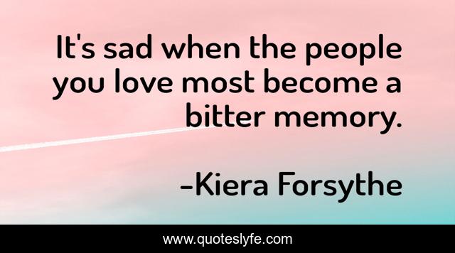 This page presents the quote "It's sad when the people you love most become a bitter memory.". Author of this quote is Kiera Forsythe. This quote is about memories, life, love, affection,.