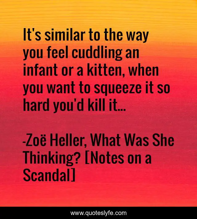 This page presents the quote "It's similar to the way you feel cuddling an infant or a kitten, when you want to squeeze it so hard you'd kill it...". Author of this quote is Zoë Heller, What Was She Thinking? [Notes on a Scandal]. This quote is about love, obsession, affection,.