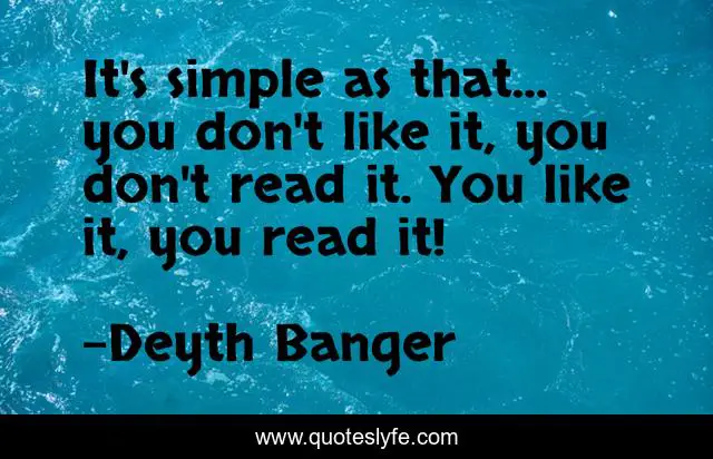 This page presents the quote "It's simple as that... you don't like it, you don't read it. You like it, you read it!". Author of this quote is Deyth Banger. This quote is about read, it, like,.