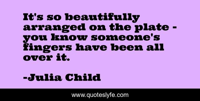 This page presents the quote "It's so beautifully arranged on the plate - you know someone's fingers have been all over it.". Author of this quote is Julia Child. .