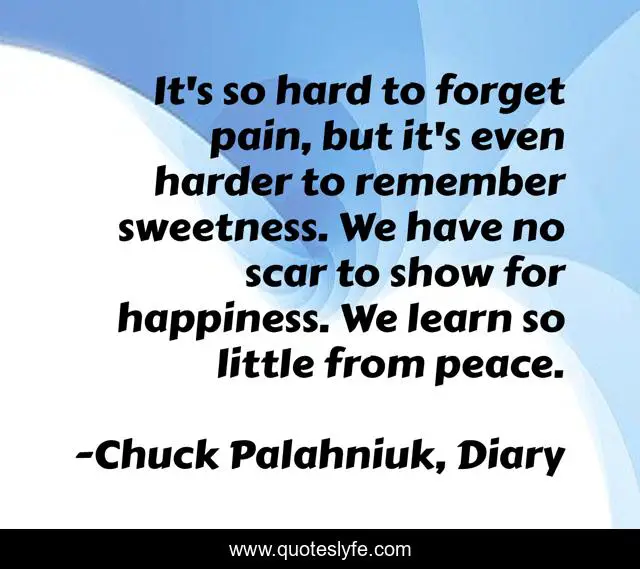 "Chuck Palahniuk, Diary Quotes." Quoteslyfe.com, 2025. Tue. 09 Dec. 2025. <https://www.quoteslyfe.com/quote/It-s-so-hard-to-forget-pain-15967>.
