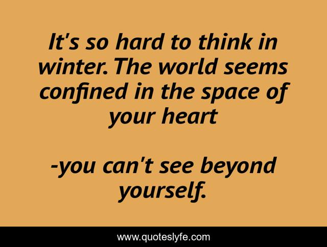 This page presents the quote "It's so hard to think in winter. The world seems confined in the space of your heart". Author of this quote is you can't see beyond yourself.. This quote is about patricia a. mckillip, winter rose,.