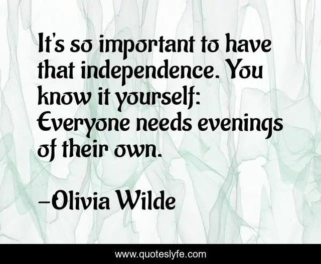 This page presents the quote "It's so important to have that independence. You know it yourself: Everyone needs evenings of their own.". Author of this quote is Olivia Wilde. .