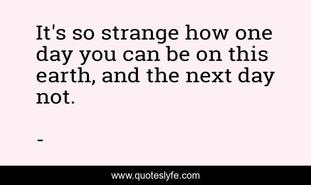 This page presents the quote "It's so strange how one day you can be on this earth, and the next day not.". Author of this quote is . This quote is about enthusiasm, sadness, inspirational,.